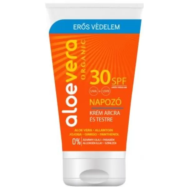 Az Eredeti Aloe Vera napozókrém egy 30 faktoros, könnyű állagú, arcra és testre egyaránt ajánlott napvédő krém. Gyorsan beszívódik, nem hagy zsíros, ragacsos érzetet. Védi a bőrt a leégéstől, és rendszeres használata segít megelőzni a bőr idő előtti öregedését. Fokozottan ajánlott az arcbőrt fényérzékennyé tevő kozmetikai kezelések után. Egész évben használható smink alá is. Bőrápoló anyagai hozzájárulnak a bőr megfelelő hidratáltságának fenntartásához. Nem tartalmaz parabént, kőolajszármazékot, allergén illatanyagot.