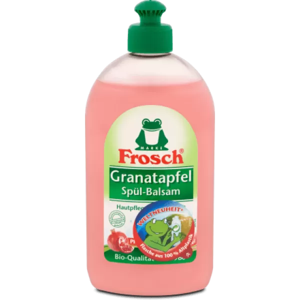 A Frosch mosogatószer gránátalma kivonattal készült, amely hatékonyan távolítja el a zsíros szennyeződéseket, miközben védi és ápolja a bőrt. A gránátalma természetes összetevőinek köszönhetően friss illatot biztosít minden egyes használatkor.
