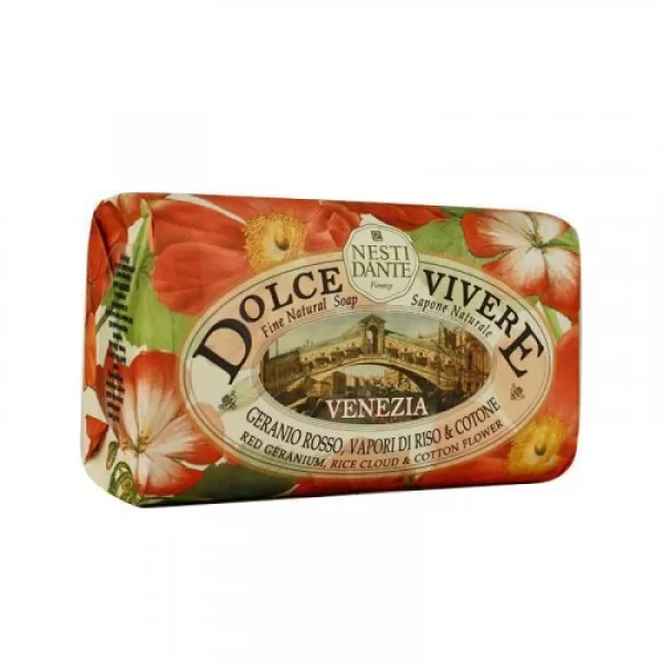 A Nesti Dante ezzel a fantasztikus szappannal tiszteleg az Adria Királynőjének. A kifinomult gyapotvirág, piros muskátli és rizspor gyengéd egyvelege.