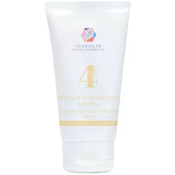 A Schüssler Nr. 4-es (kalium chloratum) natúr krém a tágult hajszálerek (couperosis) megjelenésekor lehet segítségünkre. Ezen ásványi só hiányakor a következőket tapasztalhatjuk: tejfehér színű arcbőr, szemzug környéki grízesség.